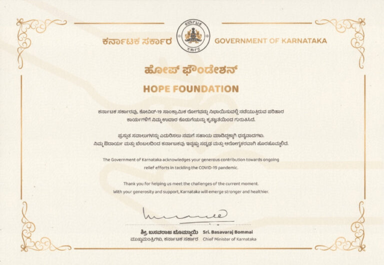 We’re honored to receive a letter of appreciation from Chief Minister Basavaraj Bommai and the