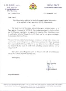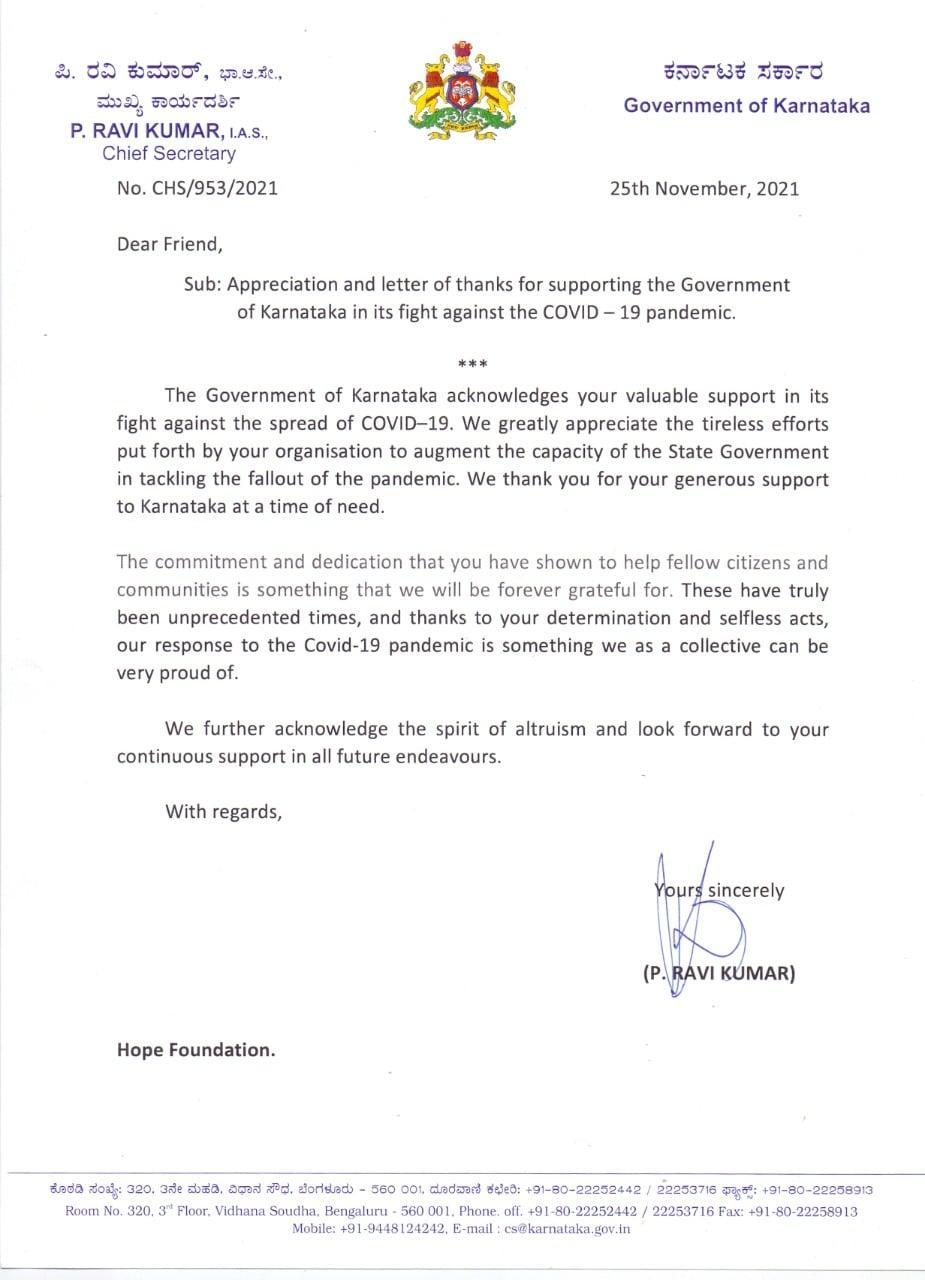 We’re honored to receive a letter of appreciation from Chief Minister Basavaraj Bommai and the Chief Secretary, P. Ravi Kumar, Government of Karnataka.